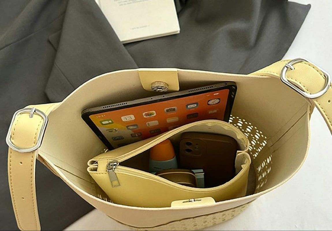 2 Pcs Hollowed Bucket Bags Women Trendy PU Leather Hobo Underarm Shoulder Bag Crossbody Purse Beach Travel Tote Handbag 2025