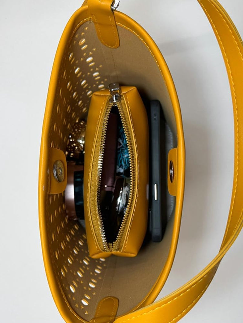 2 Pcs Slouchy Hollowed Hobo Bucket Bags Women PU Leather Underarm Shoulder Bag Crossbody Purse Beach Tote Handbag