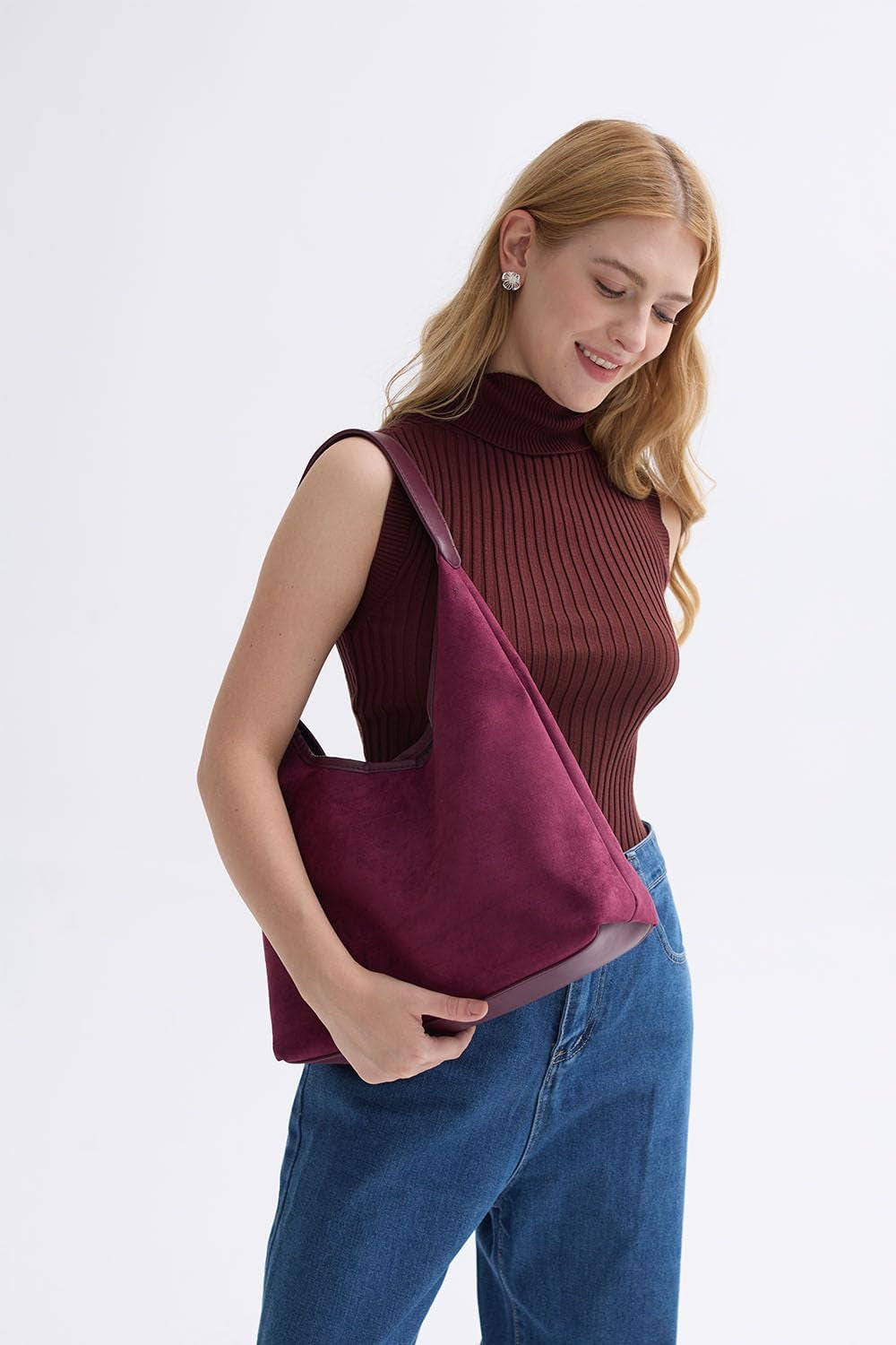 2024 New Suede Hobo Bag for Women Slouchy Purse Fall Office Tote Handbag