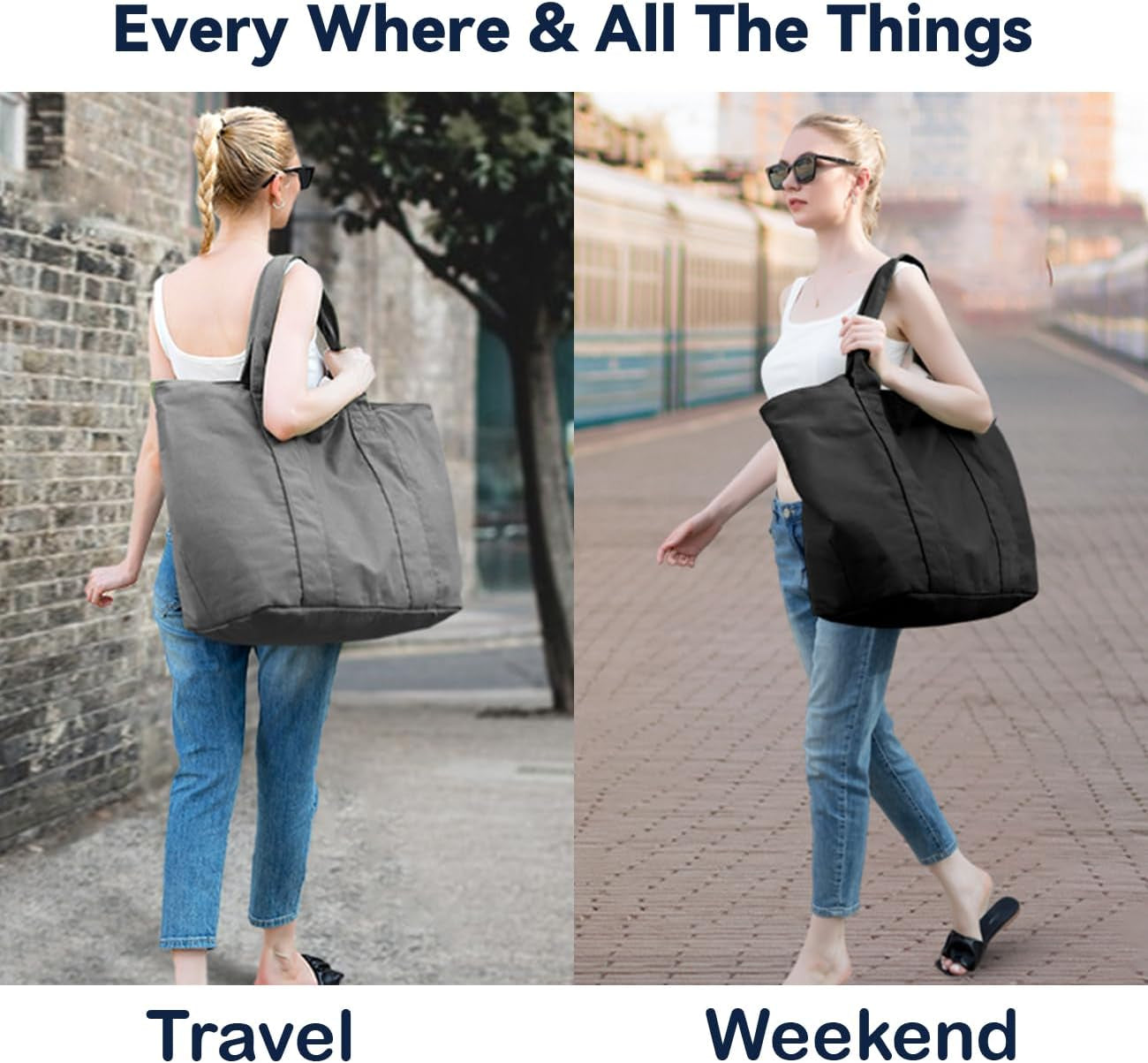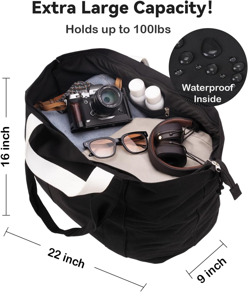 22'' 50L Large Canvas Bag, Extra Large Tote Bag for Women, Overnight Bags for Travel