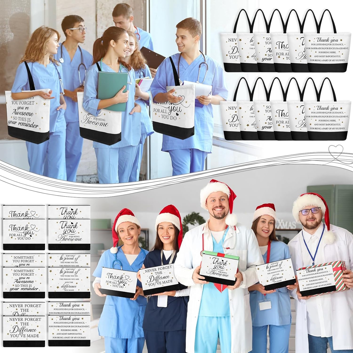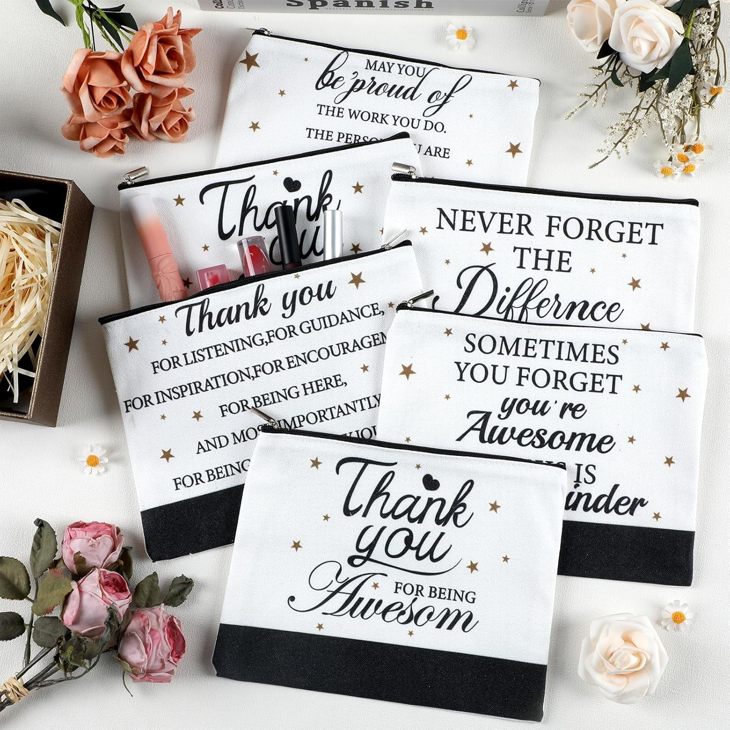 24PCS Thank You Canvas Tote Bags with Handles Zipper Employee Inspirational Makeup Bags for Employee Appreciation Gifts Women Aesthetic Canvas Bag Inspired Gift for Team Staff Teacher Coworkers Office