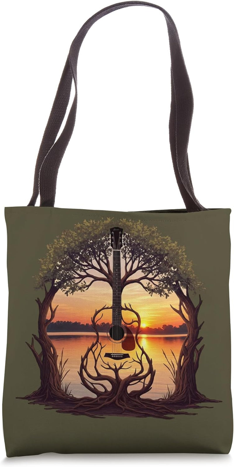 Acoustic Guitar Tree Sunset Lake Love Musician Nature Music Tote Bag