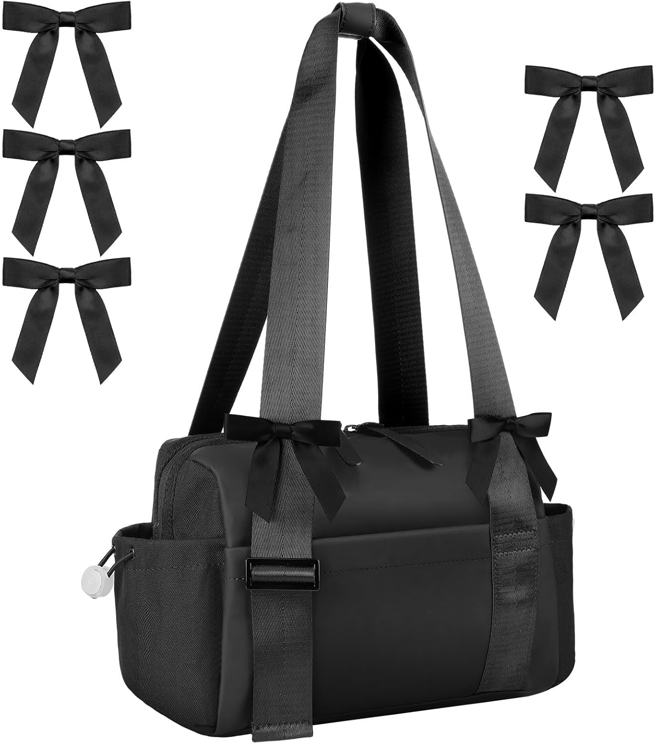 Black Bows Mini Gym Bag for Women Coquette Small Gym Tote Mini Duffle Bag with 5 Pcs Bows for Travel Weekender Yoga