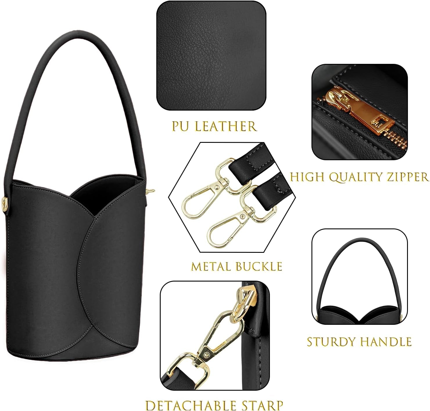 Bucket Bag for Women Vegan Leather Handbags with Removable Strap Small Shoulder Purse Crossbody Totes Bags