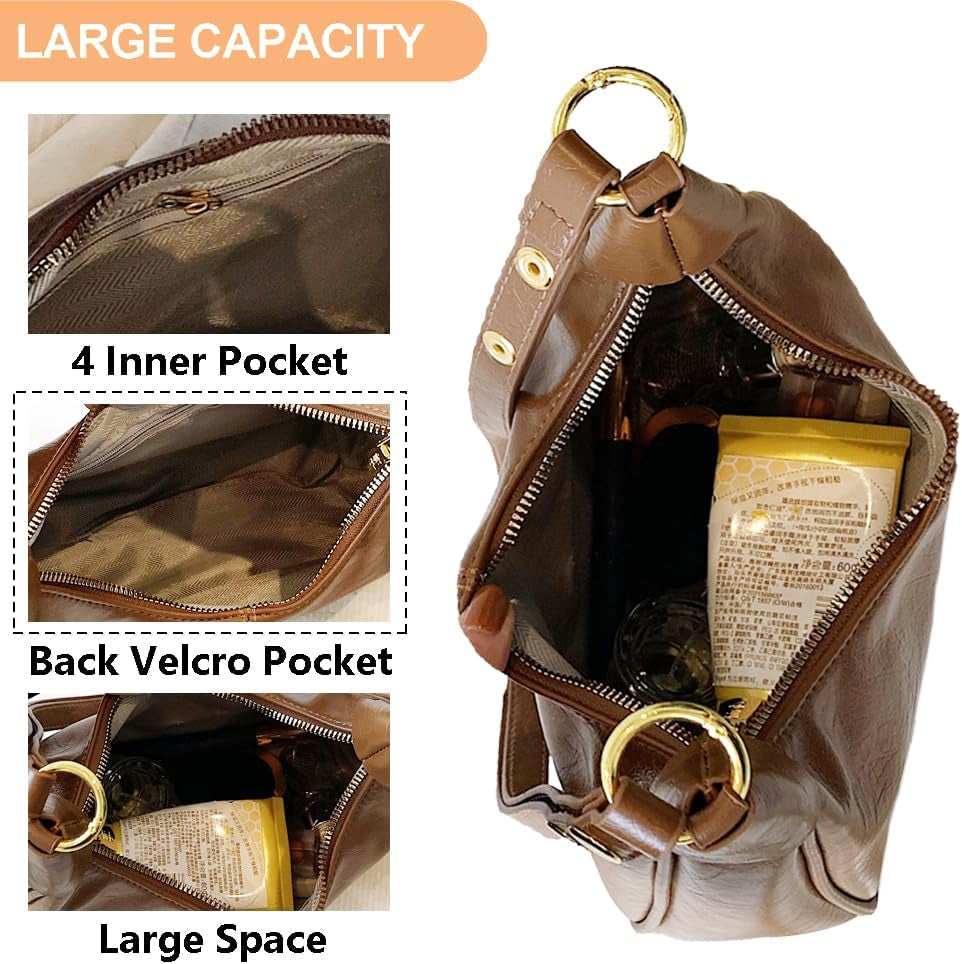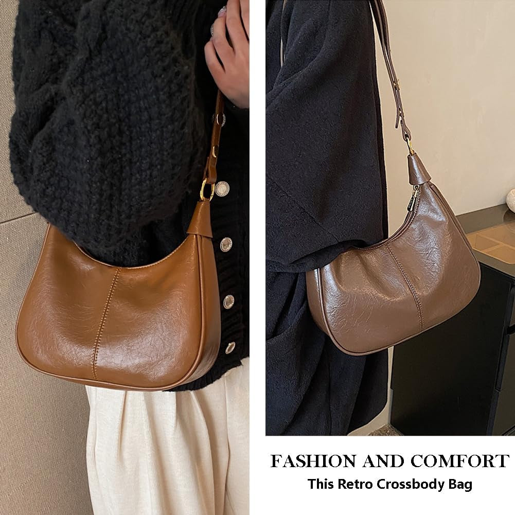 Crescent Hobo Bags Retro Crossbody Bag Vegan Leather Shoulder Purse Soft Cute Handbag for Women