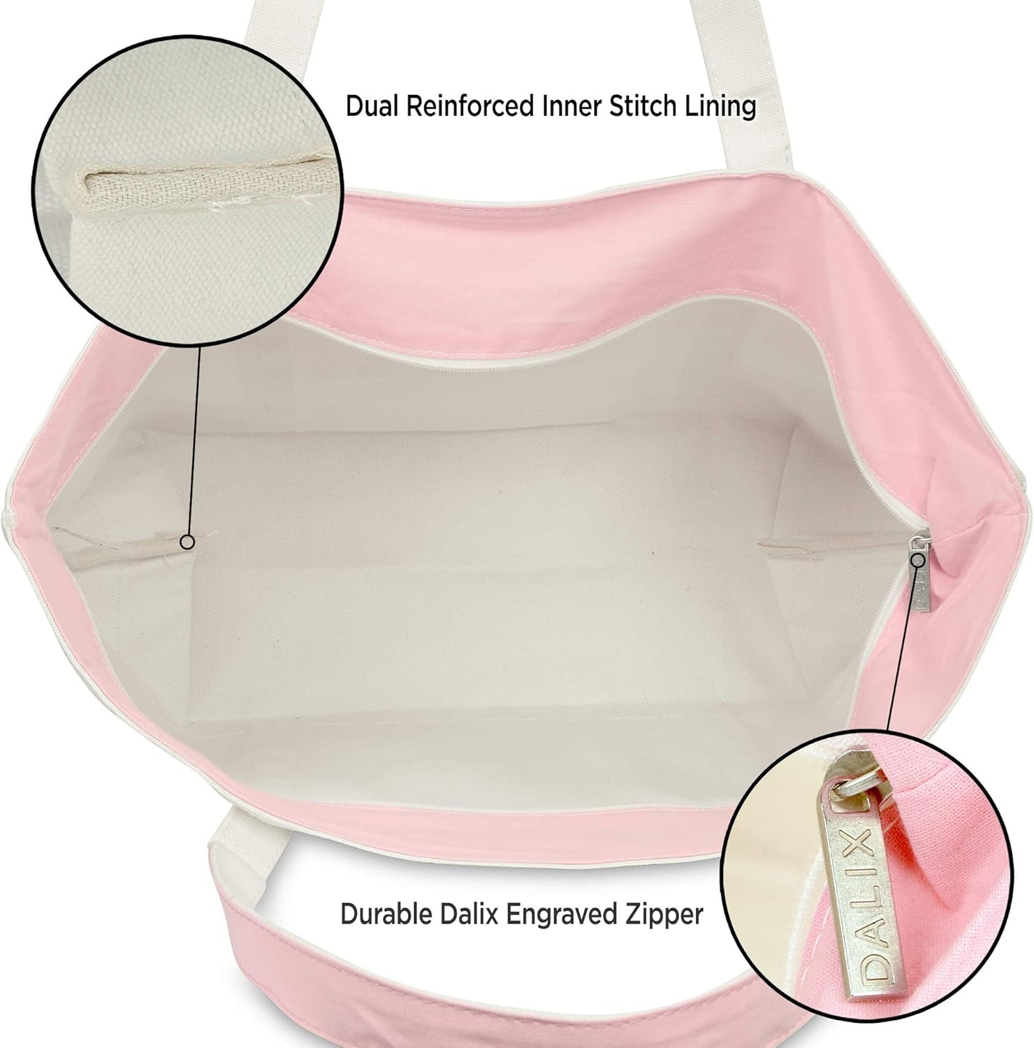 This tote features a spacious main compartment perfect for storing all your necessities. Provides dual reinforced inner stitching and durable DALIX engraved zippers.