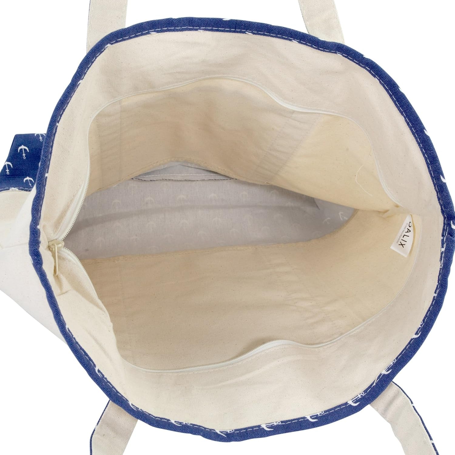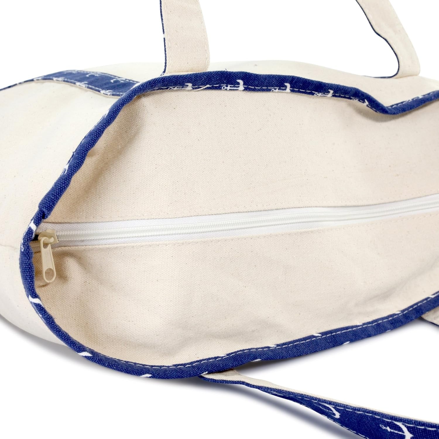 Add a bit of fun to your daily experience with these monogrammed letter totes. Our unique Navy Blue Anchor design itself is sure to bring a smile to anyone; but why stop there? Include a personalized expression of your favorite letter embroidered on the front pocket! Made to allow individual expressions, this bag is customized just for you: take a pick A through Z for your favorite letter. All totes are ensured to use only premium threading on the stitching for ever-lasting results. We guarantee fine threaded details on each of our totes created! Not only is this tote bag is made with 100% Cotton, it pre-softened prior to your purchase. The fabric consists of heavy duty 12 oz. canvas material; with weight endurance up to 2 gallon jugs of milk just fine! The straps also feature heavy duty stitching to ensure longer carrying and No Breaking. For safekeeping, it also features Top Zippered Opening so your goods don't fall out! There is also a front pocket (8" Height x 8" Width) for additional storage of larger accessories. Take a browse through our catalog for custom featured designs and lettering items. Whether you wish to bring it for grocery shopping, or simply have a nice beach day, it is suitable for all occasions. Ask us about our other colors! FEATURES: Custom font embroidered in your favorite initial, Heavy Duty Shopping Tote with front open pocket, Top Zipper Closure. SIZE: 22 inches (Length) X 16 inches (Width) X 6 inches (Depth). DROP STRAP LENGTH: 9 inches. MATERIAL: 12 oz. Cotton Canvas. INTENDED USE: Shopping, Outings, Beach Days, Handbag and Accessories Storage. COLOR: Navy Blue Anchor / LETTER DESIGN: A , B , C , D , E , F , G , H , I , J , K , L , M , N , O , P , Q , R , S , T , U , V , W , X , Y , Z