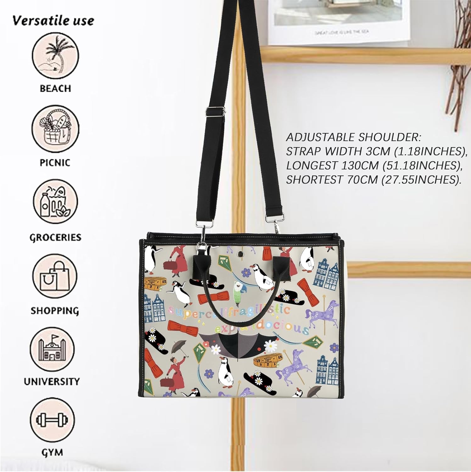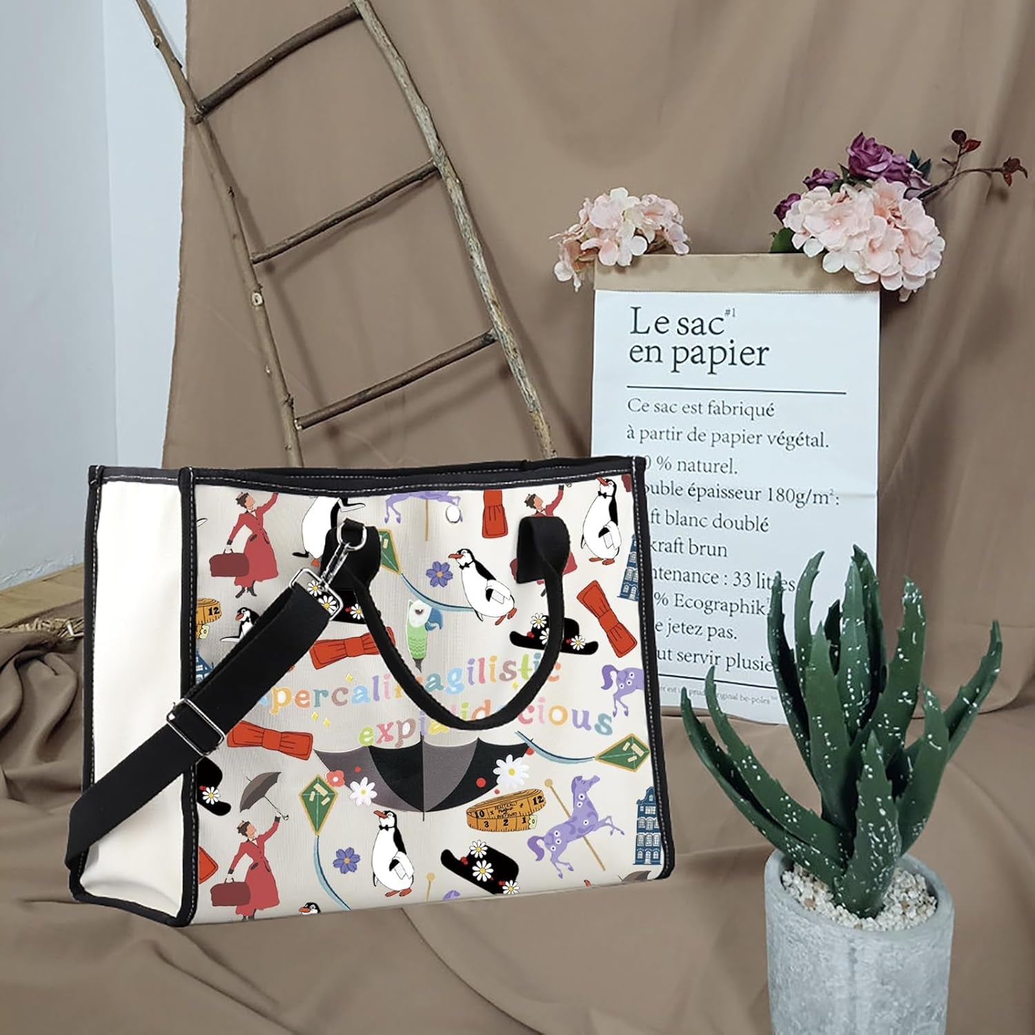 FOTAP Mary Inspire Tote Bag Supercalifragilistic Umbrella Mary Handbag Mary Musicals Lover Gift Mary Movie Shoulder Bag