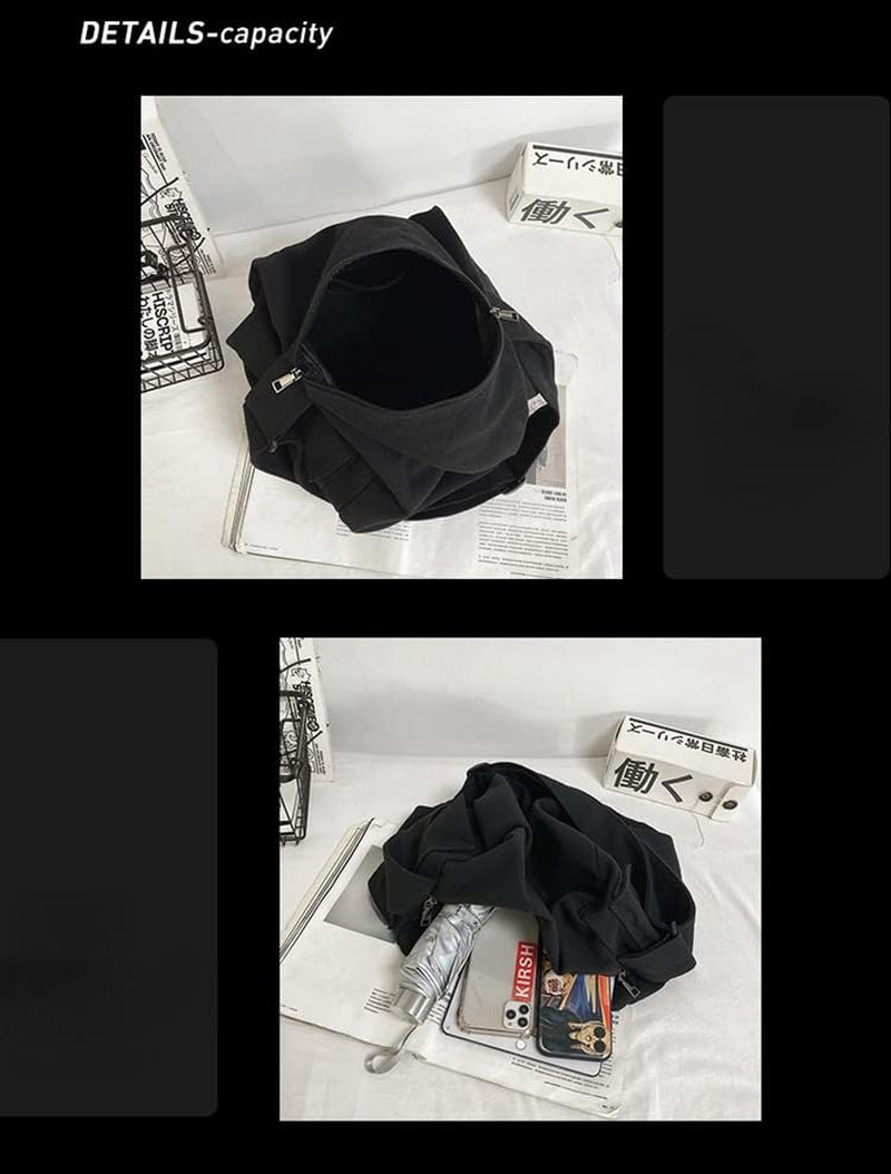 Grunge Canvas Casual Messenger Bag Hobo Crossbody Bag with with Multiple Pockets Shouder Tote Handbag for Women and Men (White)