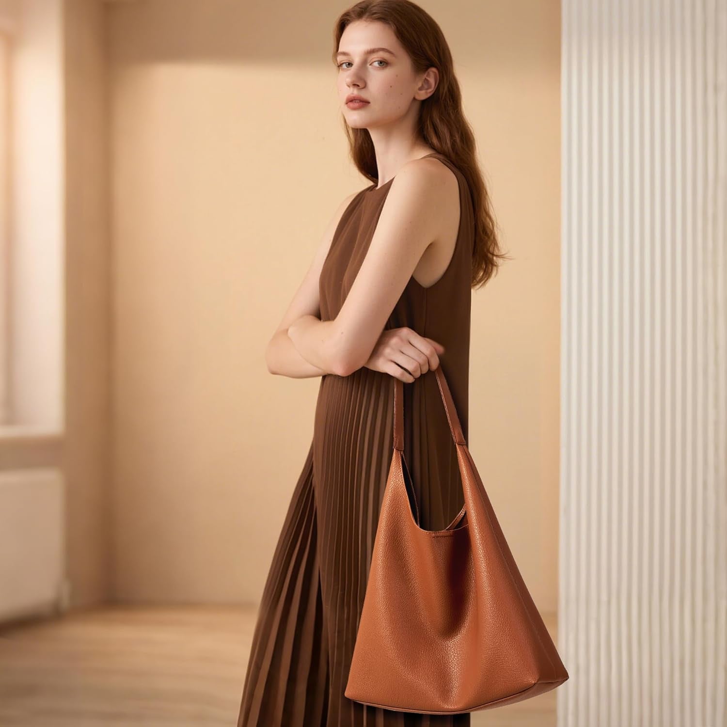 KALIDI Slouchy Hobo Bag Vegan Leather Suede Tote Bag Women Weekender Shoulder for Casual Travel Purse