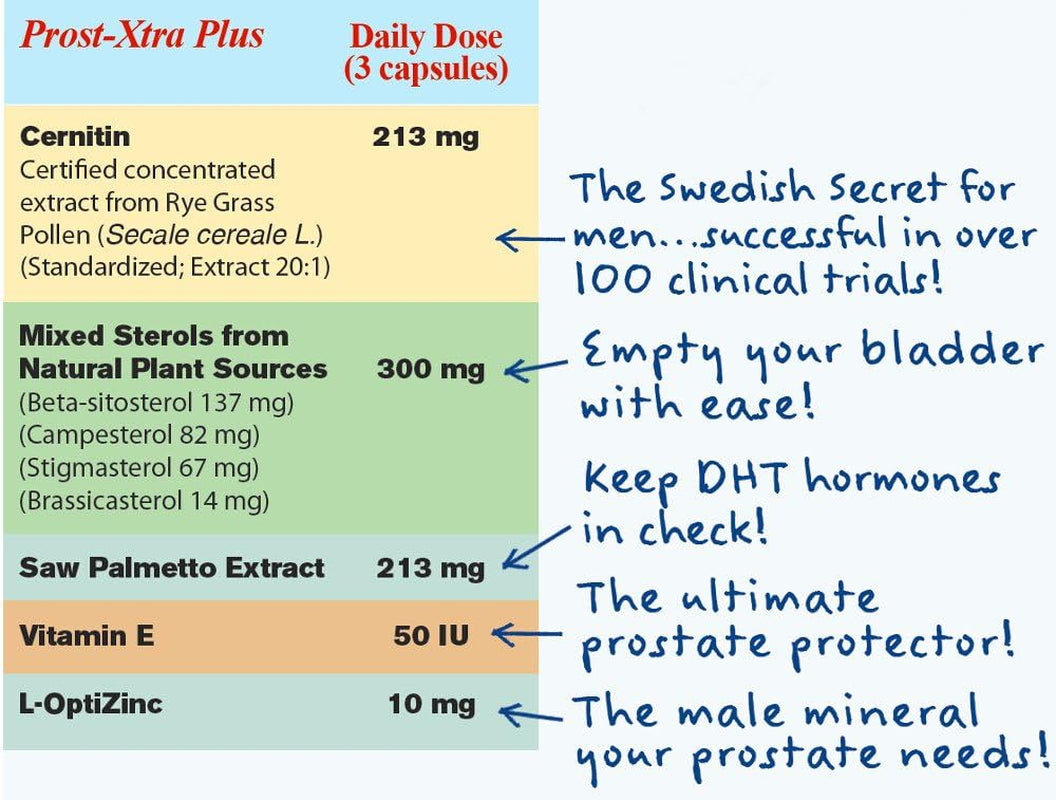 Prost-Xtra plus (2 Bottle Kit) with Rye Grass, 300Mg Plant Sterols, Saw Palmetto, Zinc, Vitamin E 90 Capsules Each