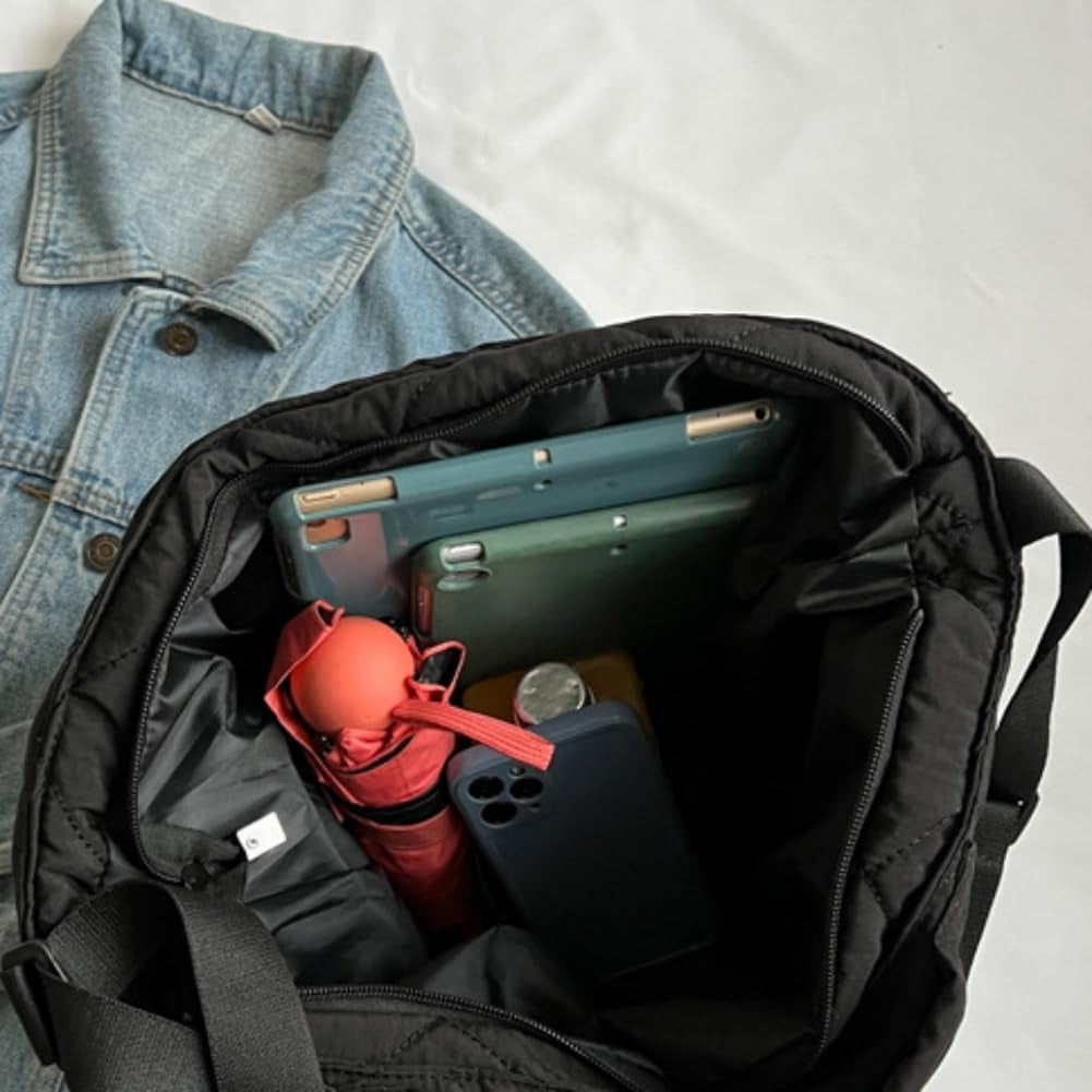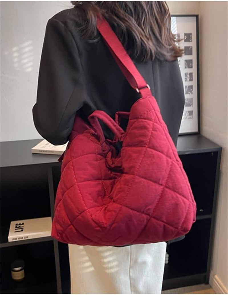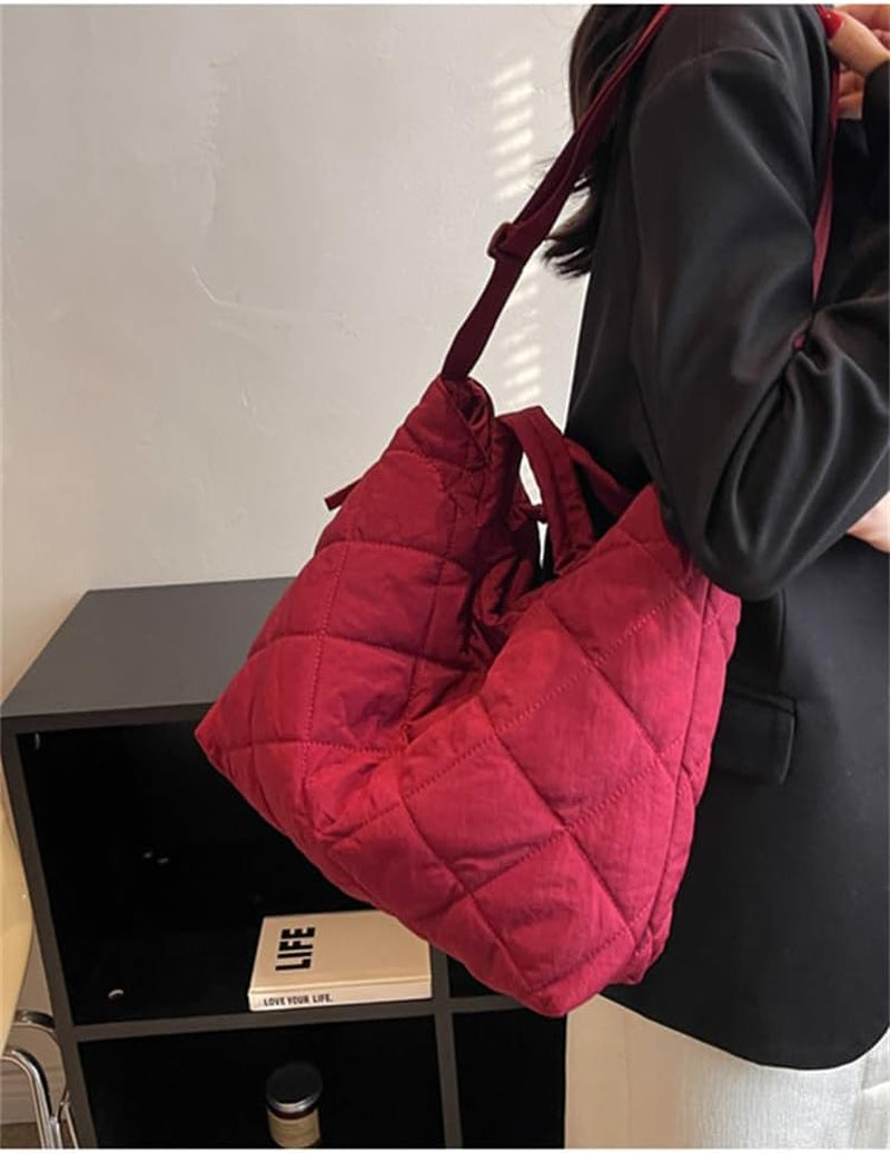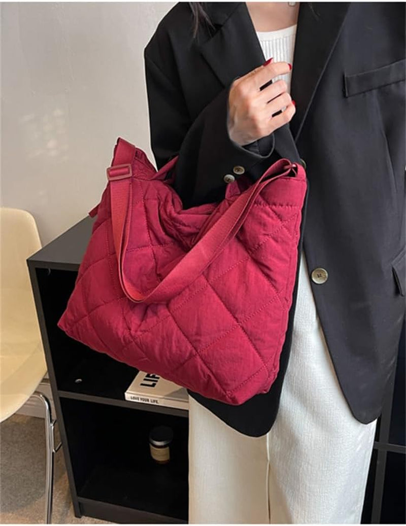 Puffer Tote Bag Women Quilted Shoulder Crossbody Handbag Lattice Nylon Padded Cotton Puffy Purse Satchel
