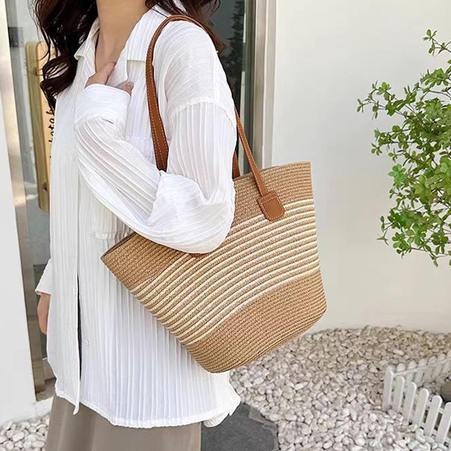 Straw Beach Bag for Women Summer Shoulder Bucket Handbag Straw Tote Bag Woven Shoulder Purses