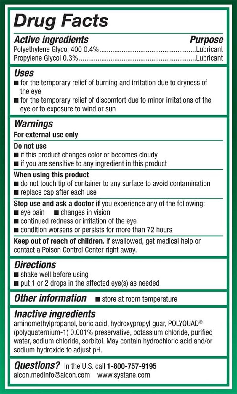 Systane Ultra Lubricant Eye Drops are clinically proven to deliver extended protection and high-performance relief from your dry eye symptoms. This Ultra formula provides you with the extended relief that you need. These lubricant eye drops have been clinically proven to reduce both the signs and symptoms of dry eye, quickly. Providing immediate, long-lasting moisture and protection Systane Lubricant Eye Drops offer the relief you need to get through your day. You no longer have to suffer through burning and irritation due to your dry eyes, get temporary relief with these lubricant eye drops. Available in multiple size bottles to keep your eyes feeling moist and refreshed during your day. The Systane Family of Products is the #1 Doctor Recommended brand of artificial tears for dry eye symptom relief. Don’t let dry eyes ruin your day, Systane provides temporary relief from your symptoms.