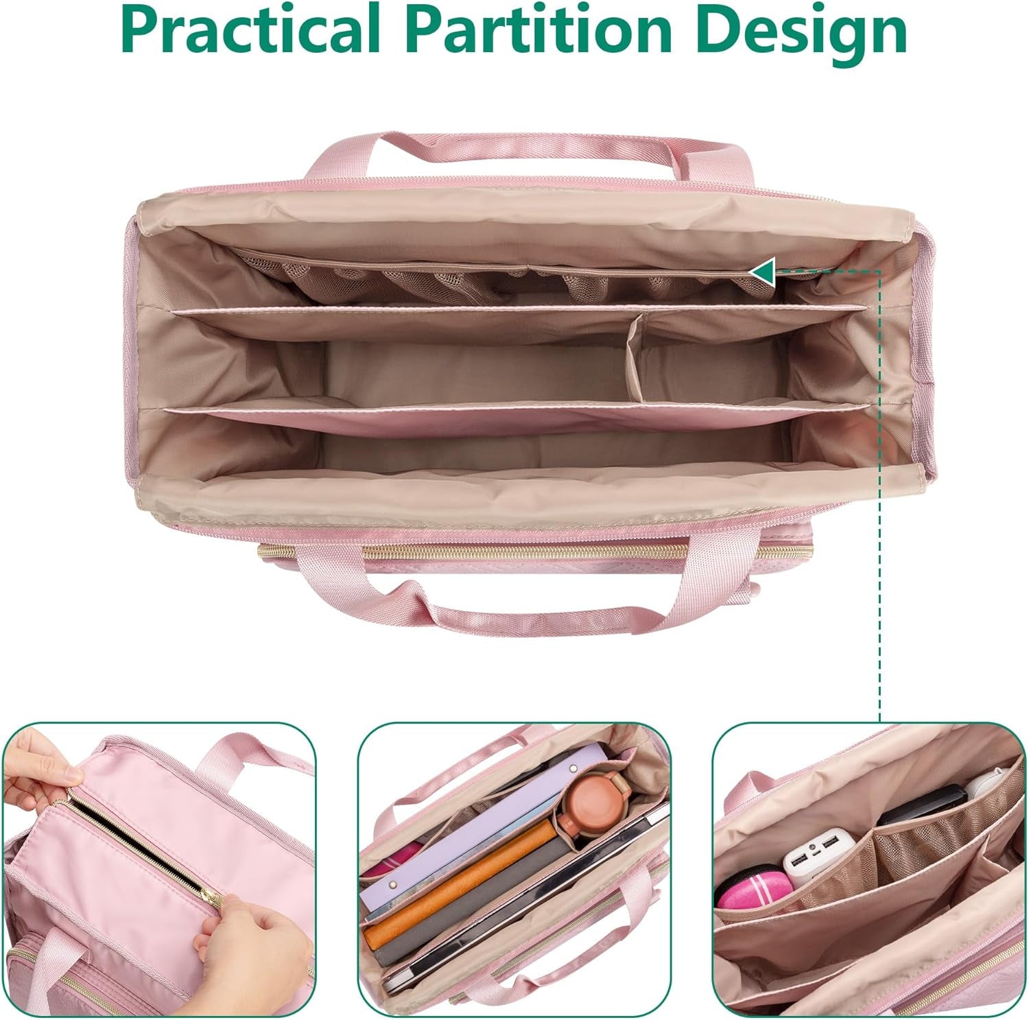 Teacher Tote Bag for Women, Work Tote Bag with Pocket for College and Office, Pink