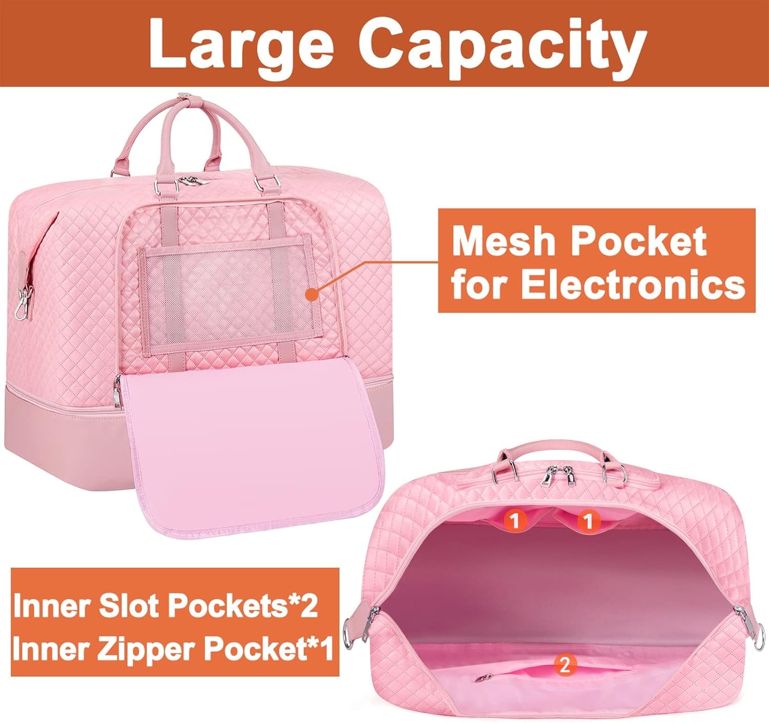 TIBES women weekender bag is a good companion for family holiday, overnight stay, weekend trips,oaccasions, hiking and camping business trips, daily travel, fitness, beach and so on. This travel duffel bag is perfect size for carrying 3-5 days daily essentials such as clothes, shoes, tumblers and electronic devices.