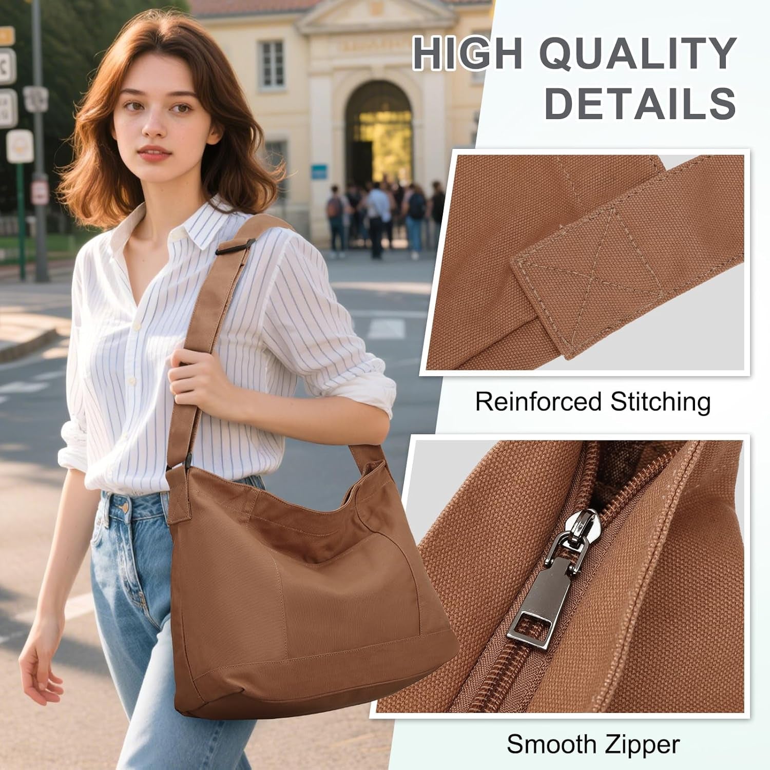 Merchant VideoVASCHY Canvas Messenger Bag, Lightweight Casual Crossbody Slouchy Shoulder Hobo Side Bag Purse for Men and Women