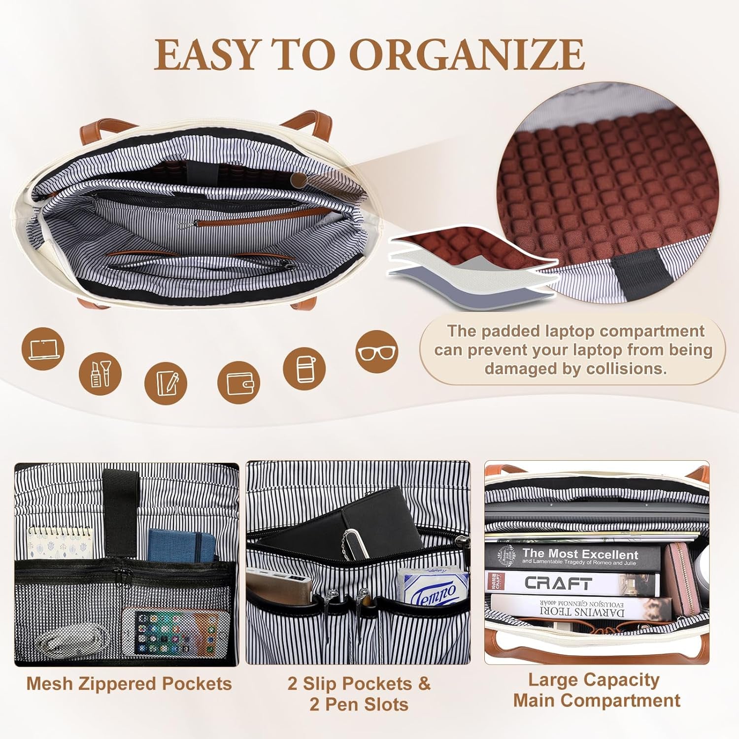 VASCHY Laptop Tote Bag for Women, Large 15.6Inch Computer Teacher Bag Purse Briefcase for Travel,Work,Business,Office