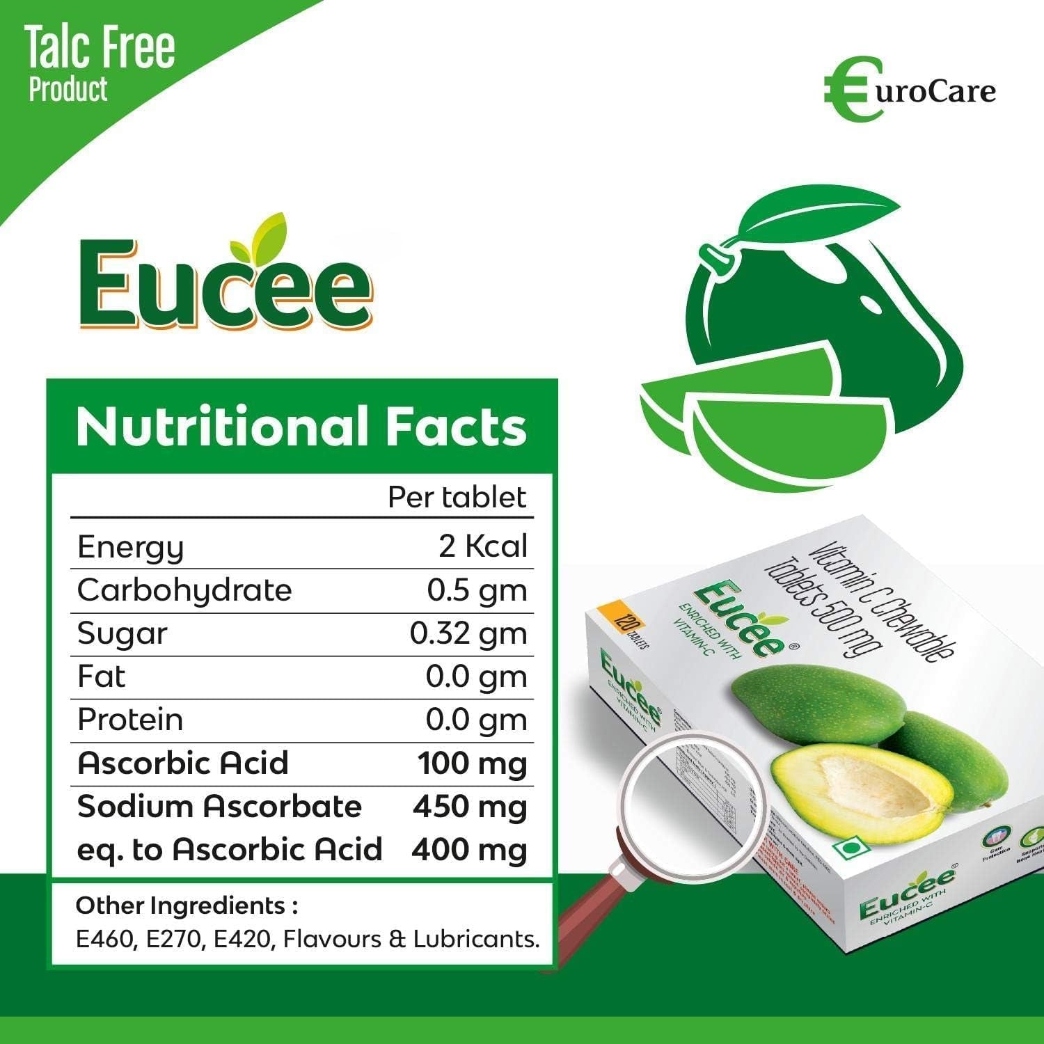 Vitamin C - Chewable Tablets for Skin & Immunity for Men, Women & Kids with Green Mango Flavour - 120 Tablets