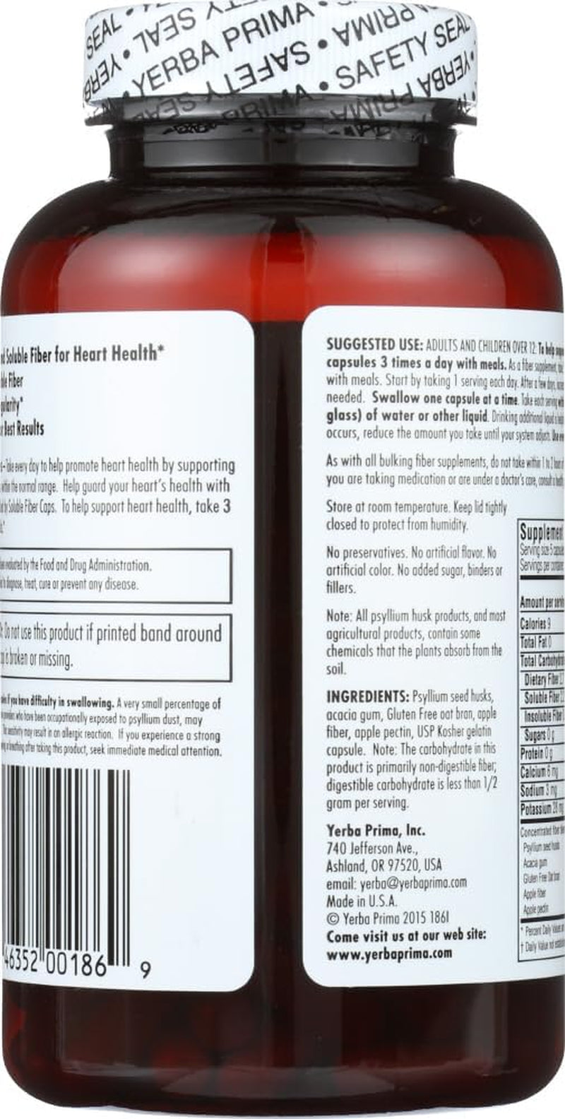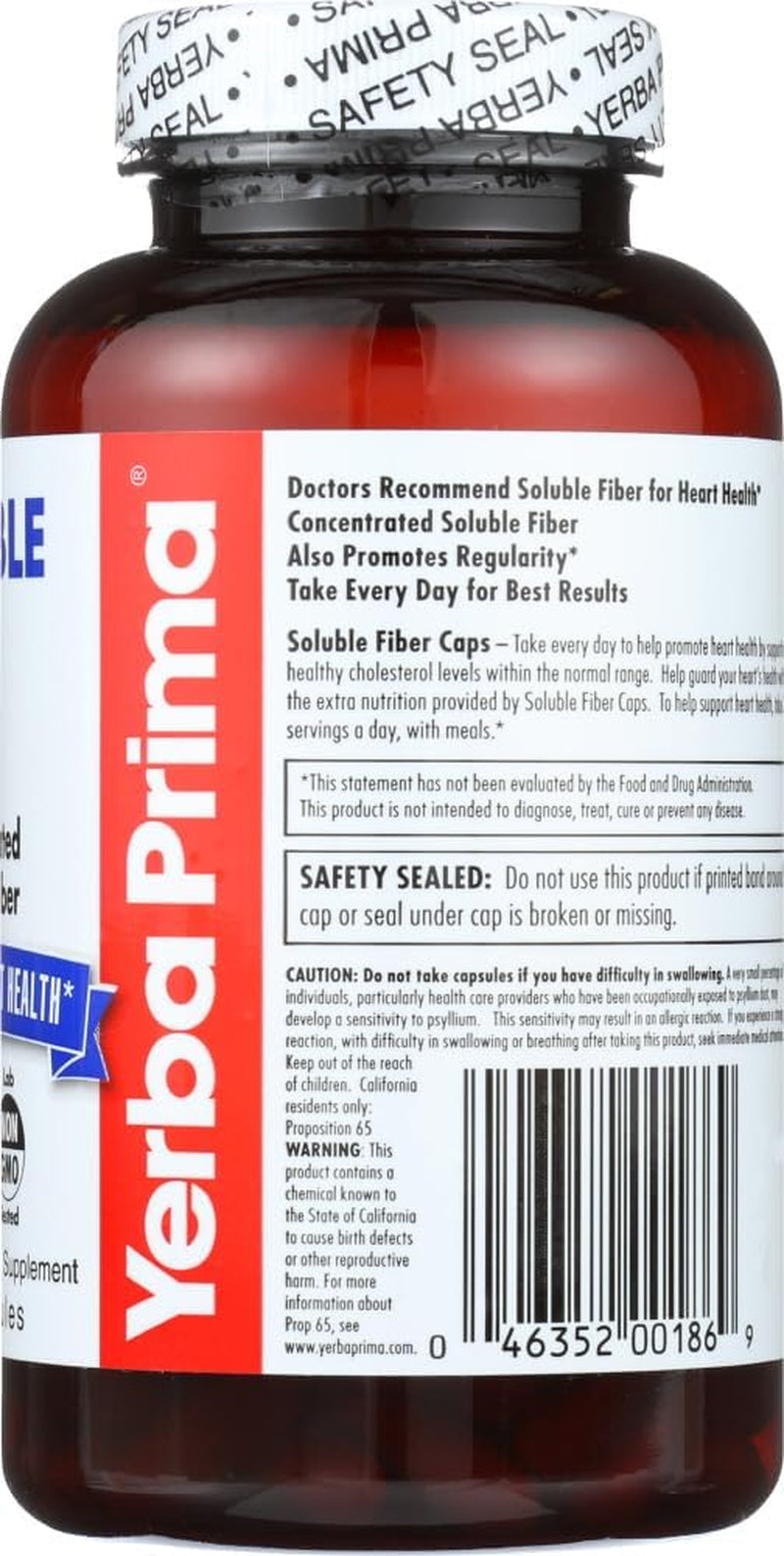Yerba Prima Soluble Fiber Capsules, 180-Count - Natural Dietary Supplement Formula, Non-Gmo, Gluten Free